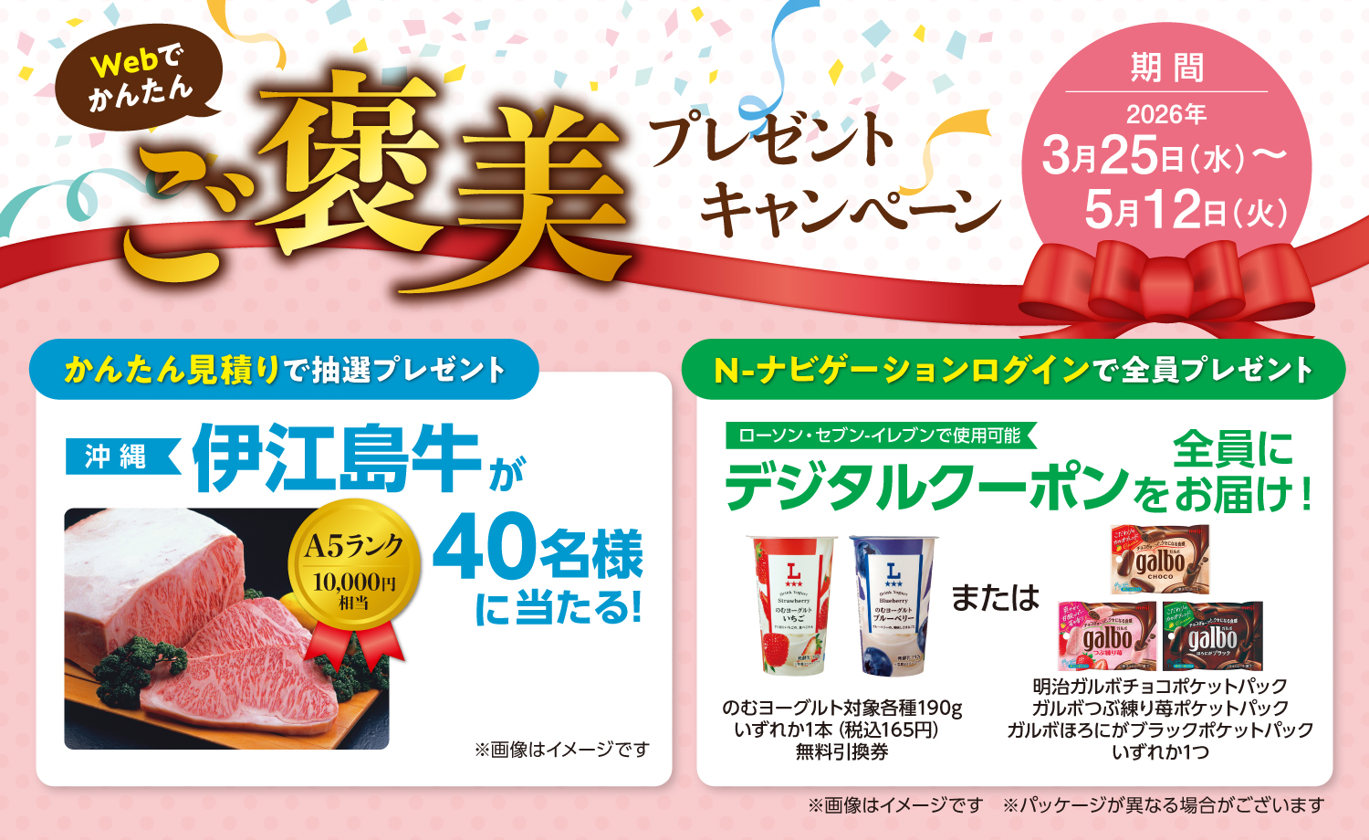 <Webでかんたん!自動車保険のご継続プレゼントキャンペーン>Webで継続いただいた方全員へプレゼント!!